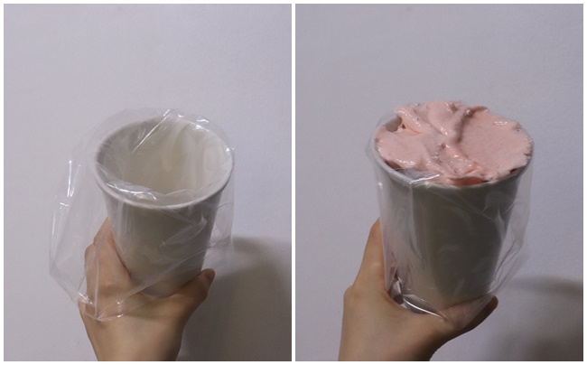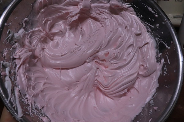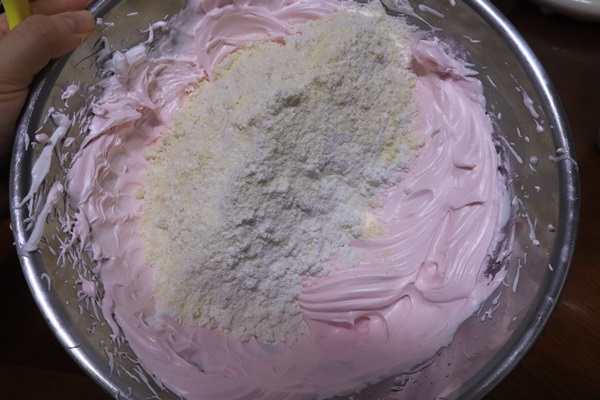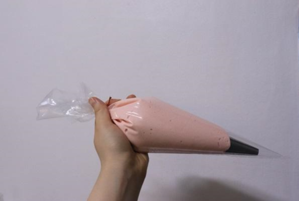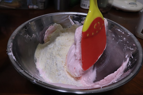 그리고 식용색소를 2방울 떨어뜨려줍니다(연한 분홍색으로 만들 거예요!)