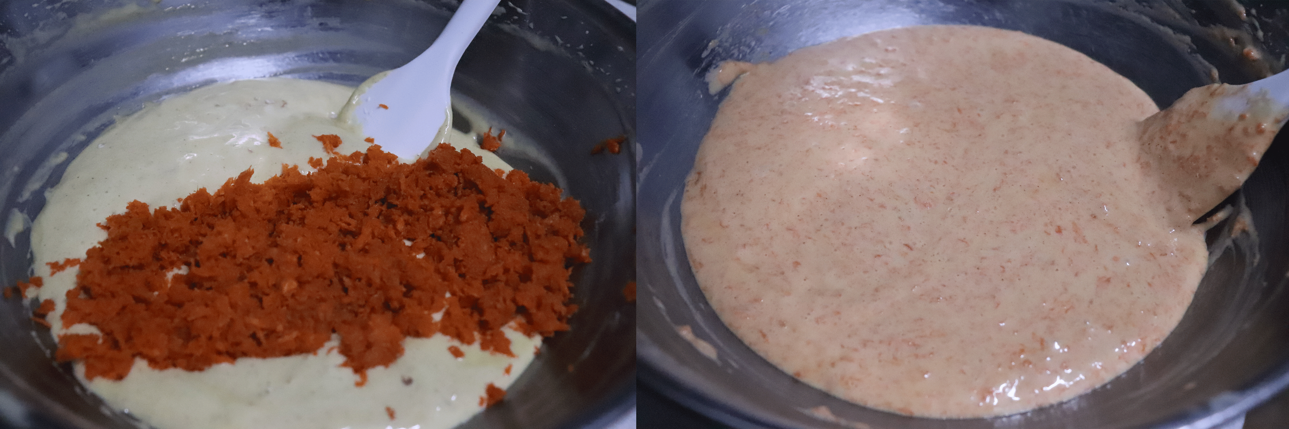 5. 갈아놓은 당근을 2번에 넣어 살살 섞어주세요